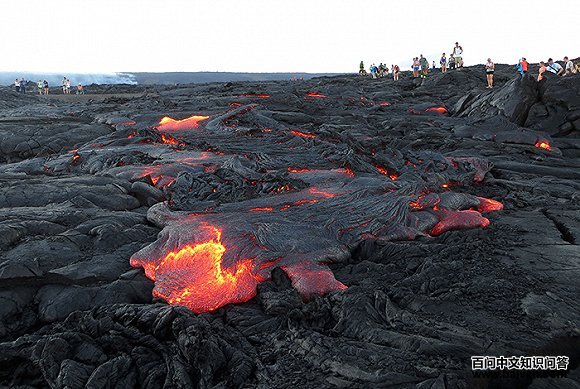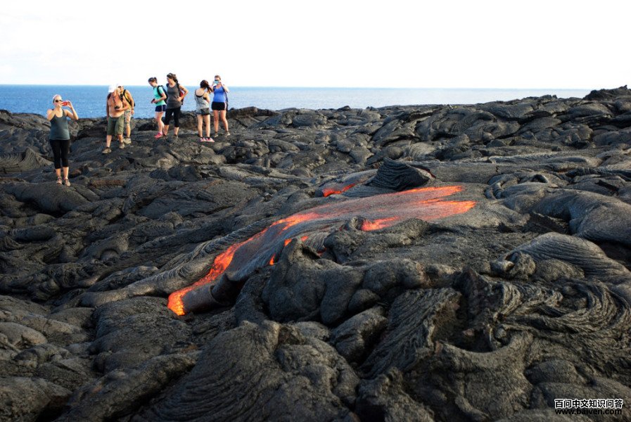 11、2016年8月,基拉韦厄火山喷发后,游客徒步前往观看熔岩。