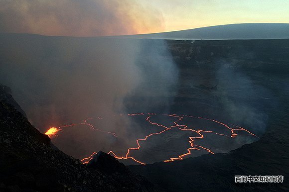 基拉韦厄火山曾长期存在着一个世上最大的岩浆湖,面积广达10万平方米,通红织热的岩浆一般有十几米深。在湖的边缘部分,经常产生暗红色的桔皮,桔皮有时破裂后再倾倒沉入白热的岩浆中去。湖面上还不时出现高几米的岩浆喷泉,喷溅着五彩缤纷的火花。当地土著人称它为“哈里摩摩”,意为“永恒火焰之家”。20年来,基拉韦厄火山持续不断涌出的大量岩浆已经在夏威夷岛东南形成几个新的黑沙滩并使岛的面积不断扩大。