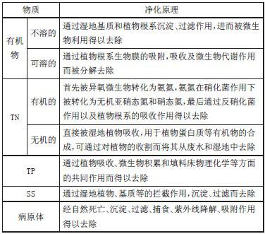È˹¤ÊªµØÏµÍ³ÊÇÓÉһЩÊʺÏÔÚÎÛȾ»·¾³Ìõ¼þÏÂÉú´æµÄÒÔ´óÐÍË®ÉúÖ²ÎïΪÖ÷µÄ¸ß¡¢µÍµÈÉúÎïºÍ´¦ÓÚ±¥ºÍ״̬µÄ»ùÖÊ×é³ÉµÄÈ˹¤¸´ºÏÌå---ÎÛË®Éú̬ϵͳ¡£È˹¤»ùÖÊ£¨ÍÁÈÀ¡¢É°Ê¯µÈ£©¡¢Ë®ÉúÖ²ÎïºÍ΢ÉúÎïÊÇÈ˹¤ÊªµØµÄÖ÷Òª×é³É²¿·Ö¡£È˹¤»ùÖÊΪ΢ÉúÎïÉú³¤ÌṩÎȶ¨µÄÒÀ¸½±íÃæ£¬ÎªË®ÉúÖ²ÎïÌṩ×ÌÉúÔØÌåºÍÓªÑøÎïÖÊ£¬²¢Í¨¹ýһЩÎïÀíºÍ»¯Ñ§Í¾¾¶¾»»¯ÎÛË®£»Ë®ÉúÖ²ÎïÖ±½ÓÎüÊÕÓªÑøÎïÖÊ£¬Îü¸½ºÍ¸»¼¯Ò»Ð©Óж¾¡¢Óк¦ÎïÖÊ£¬²¢°ÑÑõÊäË͵½¸ùÇø£¬ÒÔά³ÖË®Á¦´«Ê䣻΢ÉúÎïÔòÆð´úл×÷Óá£È˹¤ÊªµØ´¦ÀíÎÛË®µÄÔÀí¸´ÔÓ£¬Ä¿Ç°»¹È±ÉÙ½ÏΪÉîÈëµÄÑо¿¡£ÏÖÓÐÑо¿ÈÏΪ£¬ÊªµØÖ®ËùÒÔÄܹ»¾»»¯ÎÛË®£¬ÊÇÆäÖÐÎïÀí¡¢»¯Ñ§¼°ÉúÎïе÷×÷ÓúÍÓ°ÏìµÄ½á¹û¡£¸÷Ö÷ÒªÎïÖʾ»»¯¼òÒª»úÀí¼û±í1¡£