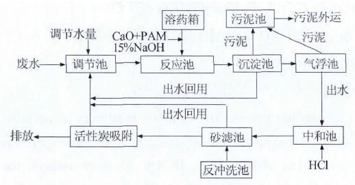 该车间含磷废水采取化学—絮凝处理工艺。即通过投加过量的石灰,使Ca2+与磷酸盐反应生成Ca10(PO4)6(OH)2沉淀,在絮凝剂(聚丙烯酰胺PAM)作用下固液分离除去。试验表明,pH 增加可有效提高对含磷废水的去除效果。当pH=11 左右时,磷酸盐去除率可达90%以上。当pH=13 左右可以达到除磷的最佳效果,但是运行成本较高。