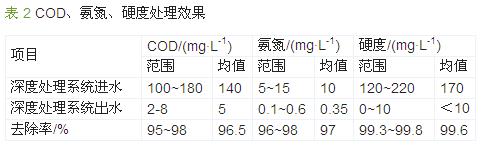通过该工程的调试、投运以及跟踪数据表明,全膜法工艺在焦化废水的深度处理及回用上有良好应用前景,工艺方案可行,设备组合合理,出水水质远优于《炼焦化学工业污染物排放标准》(GB 16171—2012)和《工业循环冷却水处理设计规范》(GB50050—2007)的要求。