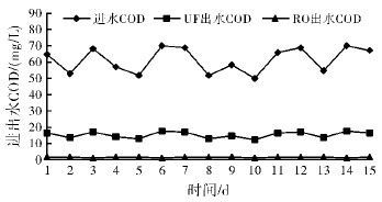 ϵͳÖÐÔË®CODCrÔÚ50 ¡« 70 mg /L£¬¾¶à½éÖʹýÂËÆ÷ºÍ³¬ÂËĤºó£¬CODCrµÄÈ¥³ýÂÊ´ï70%£¬¾¹ý·´ÉøÍ¸Ä¤µÄ½ØÁôºó£¬³öË®CODCrÎȶ¨ÔÚ2 mg /L ÒÔÏ£¬È¥³ýÂÊ´ï96%ÒÔÉÏ¡£