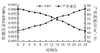 ͼ4 ³¬ÂË¿çĤѹ²îÓë²úˮͨÁ¿µÄ¹ØÏµ