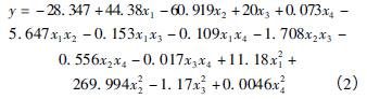 ʽÖÐ: y ΪÏìÓ¦Öµ; xi ¡¢xjΪʵÑéÒòËØ; ¦Â0Ϊ³£ÏµÊý;¦ÂiΪÏßÐÔϵÊý; ¦ÂiiΪ¶þ´ÎÏîϵÊý; ¦ÂijΪ½»»¥ÏîϵÊý;¦ÅÎªËæ»úÎó²î¡£