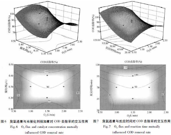 ΪÁ˸üºÃµØ¿¼²ì³ôÑõͨÁ¿¡¢¹â´ß»¯¼ÁͶ¼ÓÁ¿¡¢³õʼpH ºÍ·´Ó¦Ê±¼ä½»»¥×÷ÓöÔCOD È¥³ýЧ¹ûµÄÓ°Ï죬»æÖÆÁË·´Ó¦ÈýάÇúÃæÍ¼ºÍµÈ¸ßÏßͼ¡£