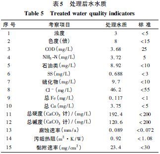 ²ÉÓÃÓÅ»¯·½°¸£¬¶ÔÁ¶ÓÍ·ÏË®½øÐÐÉî¶È´¦Àí£¬½øÐÐÁË5 ×鯽ÐÐʵÑ飬¸÷¸öÖ¸±êȡƽ¾ùÖµ£¬²¢½«ÊµÑé½á¹ûÓë¡¶°²Çìʯ»¯»ØÓÃÓÚÑ»·ÀäÈ´Ë®²¹Ë®µÄË®Öʱê×¼¡·½øÐÐÁ˶Աȣ¬ÊµÑé½á¹û¼û±í5¡£