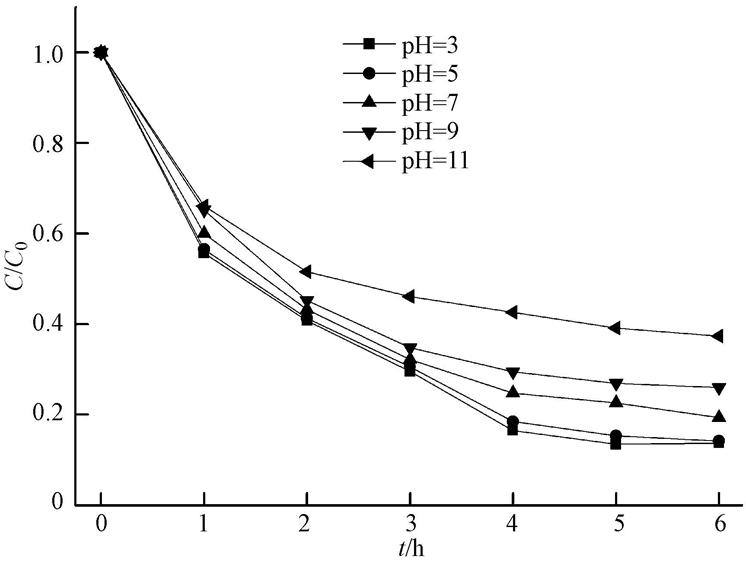ͼ1 pH¶ÔPSÑõ»¯Ó¡È¾ROŨˮÖÐÓлúÎïÈ¥³ýЧ¹ûµÄÓ°Ïì