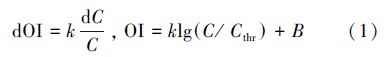 式中,OI为臭气强度,C为恶臭物质浓度,Cthr为恶臭物质感觉阈值,k和B对特定恶臭物质为常数.由于臭气强度相关研究的覆盖面不广,尚不深入,大量填埋场VOCs缺乏k值,无法根据式(1)计算臭气强度.只有少量文献采用臭气强度指标开展填埋场恶臭物质的筛选和评估工作.