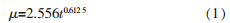 (4)包埋复合菌处理COD 的动力学过程可用幂函数进行模拟,经验方程为:μ=2.556t0.6125。