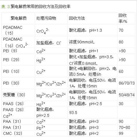 ΪÁ˱£Ö¤¶ÔÎÛȾÎïµÄÈ¥³ýÂÊ£¬ÔÚPEUF ÖÐËùʹÓõľ۵ç½âÖÊÓëÎÛȾÎïµÄŨ¶È±ÈÔ¶´óÓÚ1£¬ËùÒÔ¾Ûµç½âÖʵÄÓÃÁ¿ºÜ´ó£¬Á¬ÐøÔËÐÐʱ²Ù×÷³É±¾¸ß£¬ÇÒ PEUF ŨËõÒºÖк¬ÓиßŨ¶ÈµÄ¾Ûµç½âÖÊ£¬Èç¹û²»¾´¦ÀíÖ±½ÓÅŷŵ½»·¾³ÖУ¬ÈÝÒ×Ôì³É¶þ´ÎÎÛȾ¡£Òò´Ë£¬ÈçºÎÓÐЧµØ»ØÊÕÀûÓþ۵ç½âÖÊ£¬¼õСÔËÐгɱ¾²¢½µµÍ¶þ´ÎÎÛȾµÄΣÏÕÖð½¥³ÉΪPEUF ¼¼ÊõµÄÑо¿Èȵ㡣¾ÍĿǰµÄÑо¿×´¿öÀ´¿´£¬¾Ûµç½âÖʵĻØÊÕ·½·¨Ö÷ÒªÓÐËữ³¬ÂË·¨¡¢¼ÓÑγ¬ÂË·¨¡¢µç½â»ØÊÕ·¨ÒÔ¼°Õâ3 ÖÖ·½·¨µÄ×éºÏ¡£±í 3 ×ܽáÁ˾۵ç½âÖʳ£ÓõĻØÊÕ·½·¨¼°»ØÊÕÂÊ¡£