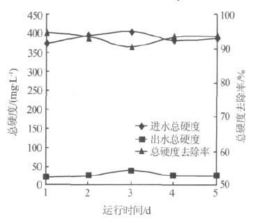 图 3 电渗析系统对原水总硬度的去除效果