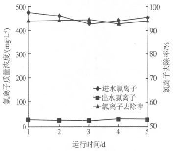 图 4 电渗析系统对原水氯离子的去除效果