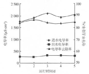 图 5 电渗析系统对原水电导率的去除效果