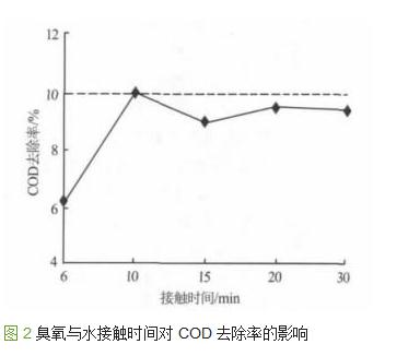 ´Óͼ2¿ÉÒÔ¿´³ö£¬³ôÑõÓëÎÛË®³ä·Ö½Ó´¥10minºóCODÈ¥³ýÂÊÔ¼10%£¬´ïµ½×î¼ÑÈ¥³ýЧ¹û£¬¹ÊÈ·¶¨³ôÑõÑõ»¯×î¼Ñ½Ó´¥Ê±¼äΪ10min¡£