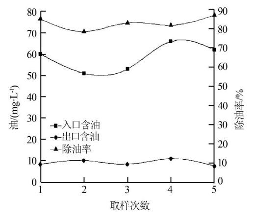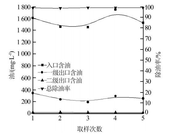 (入口流量4 m3/h、入口含油1 453~1 753 mg/L)