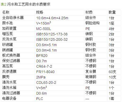 Ë®´¦ÀíϵͳÓÉÈ«×Ô¶¯¾»Ë®Æ÷+ɰÂË+̼ÂË+»»ÈÈÆ÷+±£°²¹ýÂËÆ÷+·´ÉøÍ¸ÏµÍ³×é³É£¬¾ßÌåÅäÖÃÈç±í 2Ëùʾ¡£