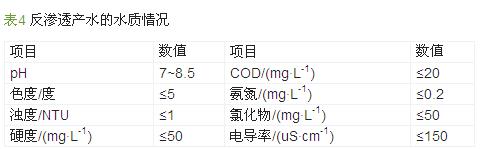 ´Óʵ¼ÊÇé¿öÀ´¿´£¬·´ÉøÍ¸ÏµÍ³Ôڸû¯Ï˳§ÎÛË®»ØÓÃÏîÄ¿ÖеÄÓ¦ÓÃЧ¹û½ÏºÃ£¬ÏµÍ³Æ½¾ù²úË®Á¿ÔÚ40 m3/h×óÓÒ£¬»ØÊÕÂÊÔÚ70%×óÓÒ£¬Âú×㹩ˮҪÇó£»µ±ÏµÍ³½øË®µçµ¼ÂÊÔÚ3 000¡«5 000 ¦ÌS/cm²¨¶¯Ê±£¬²úË®µçµ¼ÂÊÔÚ150 ¦ÌS/cmÒÔÏ£¨Éè¼ÆÒªÇóÔÚ250 ¦ÌS/cmÒÔÏ£©£¬Âú×ã¸Ã³§¹¤ÒÕÓÃË®µÄË®ÖÊÒªÇó¡£ÆÚ¼ä¶Ô²úˮˮÖʽøÐзÖÎö£¬Èç±í 4Ëùʾ¡£