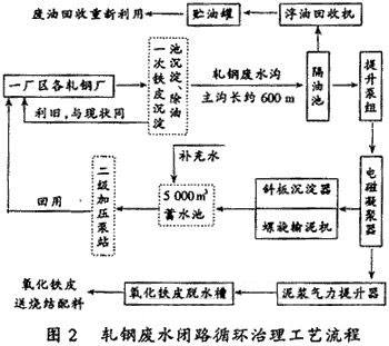 轧钢废水闭路循环治理工艺流程见图2(图中虚线框所示为现有设施)。