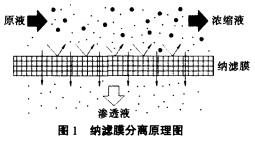 由于纳滤膜的分离区间介于超滤和反渗透之间,故可截留硫酸根离子对钠离子和氯离子有高通量。下面图1是纳滤膜的分离原理图。