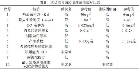 从表1中可以看出在曝气池的前端DO(溶解氧)≤015mg/l,处于缺氧或厌氧状态,中间和后端DO≥210mg/l。通过对照丝状菌和菌胶团的生理和生化性质的差异,见表Ê,证实了上述说法的正确,即进水含有大量易降解可溶性有机污染物,造成曝气池供氧不足,在曝气池前端出现缺氧或厌氧状态引起丝状菌的过度生长,使活性污泥系统发生了丝状菌污泥膨胀。此外,丝状菌的生长不是一个简单的可逆过程,虽然在曝气池的中后部DO(溶解氧)逐渐上升到正常水平,但已不能减少丝状菌的数量。