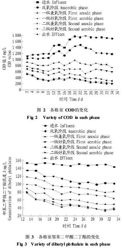 1.3.4 其他分析方法。COD采用XJ-15型COD消解仪测 定;邻苯二甲酸二丁酯和二甲苯采用紫外分光光度法测定。