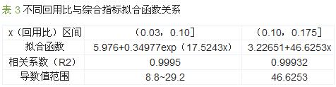 ÓÉͼ 5 ¿ÉÒÔ¿´³ö£¬Ëæ×Å»ØÓñȵÄÔö´ó£¬×ÛºÏÖ¸±êÊýÖµÔö´ó£¬Óëͼ 4 Ïà±È£¬ËüÓëϸ¾ú×ÜÊýµÄ±ä»¯Ç÷ÊÆ×ßÏò´óÖÂÏàͬ£¬ËùÒÔ¿ÉÒÔÈÏΪϸ¾úѧָ±êºÜ´ó³Ì¶ÈÉϾö¶¨×Å»ØÓñÈÀý¡£ÎªÁ˸üºÃµØ·ÖÎö˵Ã÷×ÛºÏÖ¸±êÊýÖµÓë»ØÓñÈÖ®¼ä¹ØÏµ£¬µÃ³ö×î¼Ñ»ØÓñȷ¶Î§£¬Ôڴ˶Ô×ÛºÏÖ¸±êÓë»ØÓñȹØÏµ½øÐÐÄâºÏ£¬ÄâºÏº¯Êý¼û±í 3¡£