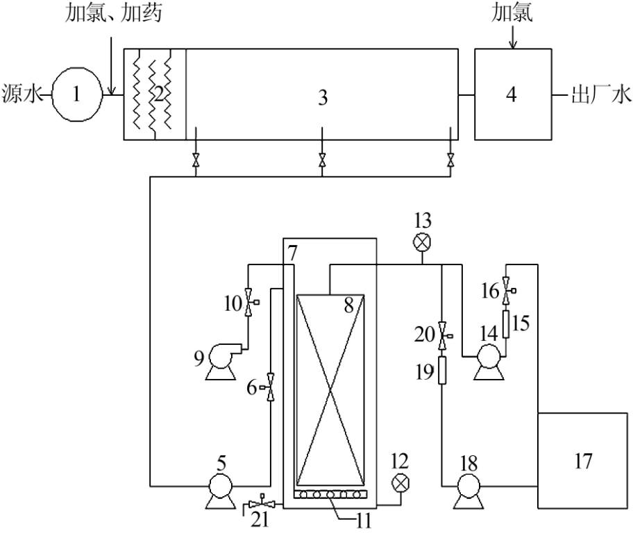 ÊÔÑéÔÚÄÏ·½Ä³Ë®³§½øÐУ¬ËùÓÃˮԴΪ±±½Ë®£¬Ë®³§²ÉÓá°»ìÄý-³Áµí-ɰÂË¡±¹¤ÒÕ£¨ÒÔϼò³ÆD¹¤ÒÕ£©¡£³¬ÂËʵÑé×°ÖÃΪÖÐÊÔ¼¶±ðµÄ½þûʽ³¬ÂËĤϵͳ£¬Èçͼ1Ëùʾ¡£
