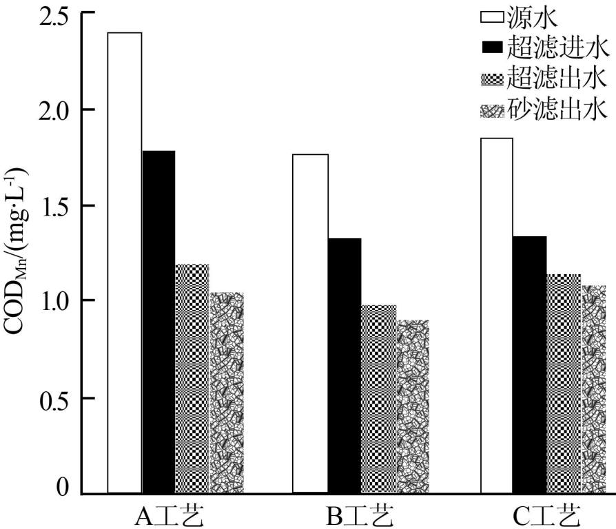 ÓÉͼ3¿É¼û£¬ÊÔÑéÆÚ¼ä£¬Ë®Ô´Ë®ÖʳöÏÖÁËÒ»¶¨³Ì¶ÈµÄ²¨¶¯£¬A¡¢B¡¢C3ÖÖ³¬Â˹¤ÒÕµÄÔ´Ë®CODMn·Ö±ðΪ2.40¡À0.34¡¢1.78¡À0.08¡¢1.86¡À0.12mg/L£¬³öË®CODMn·Ö±ðΪ1.19¡À0.06¡¢0.98¡À0.11¡¢1.14¡À0.10mg/L¡£¿É¼û£¬³¬ÂËÔÚ²»Í¬µÄ»ìÄý³Áµí¶ÎλÓëÖ®ñîºÏʱ¾ù±íÏÖ³ö¶ÔCODMnÁ¼ºÃµÄÈ¥³ýЧÄÜ£¬È¥³ýÂÊ·Ö±ð´ïµ½ÁË49.41%¡À7.55%¡¢44.63%¡À5.91%ºÍ38.41%¡À5.61%¡£µ«ÊÇ£¬Í¨¹ýÊÔÑé·¢ÏÖ£¬¶ÔÓÚ²»Í¬µÄ³¬Â˹¤ÒÕ£¬Æä³öË®ÖеÄCODMnº¬Á¿¾ùÂÔ¸ßÓÚͬÆÚµÄɰÂ˳سöË®¡£Õâ¿ÉÄÜÊÇÓÉÓÚɰÂ˳ؾ¹ý³¤ÆÚµÄÔËÐÐÒѾÐγÉÁËÎȶ¨µÄÉúÎïĤÌåϵ£¬¶ÔË®ÖÐС·Ö×ÓÖÊÁ¿µÄ¿É½µ½âÓлúÎï¿Éͨ¹ýÉúÎï½µ½â×÷ÓýøÒ»²½È¥³ý£¬¶ø³¬ÂËĤµÄÖ÷Òª»úÀíΪĤ¿×µÄÎïÀí½ØÁô£¬¶ÔС·Ö×ÓÓлúÎïÈ¥³ýЧ¹û²»¼Ñ¡£È»¶ø£¬ÎÞÂÛÊÇÔÚºÎÖÖ¶Îλ½øÐг¬ÂËÓë»ìÄý³Áµíµ¥ÔªµÄñîºÏ£¬Æä³öË®µÄCODMn¶¼¿ÉÎȶ¨ÔÚ1.2mg/LÒÔÏ£¬ºÜºÃµØÂú×ãÁËÒûÓÃˮˮÖʱê×¼£¨GB5749¡ª2006£©µÄÒªÇó¡£