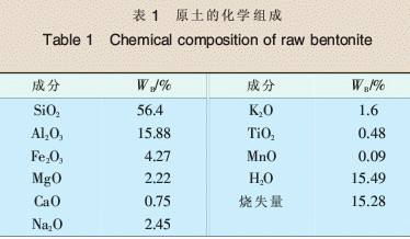 将钙基膨润土调制成质量比为20%的浆料,加入0.18 g/L 的钠盐溶液,于75℃水浴加热1.5 h,并不断搅拌,静置0.5 h, 烘干,研细,过0.14 mm试验筛,得钠基膨润土。