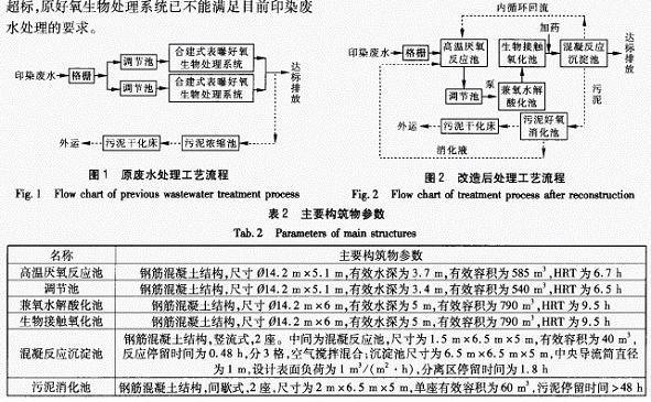 关键词: 印染废水; 高温厌氧发酵; 水解酸化; 接触氧化; 混凝沉淀; 工艺改造