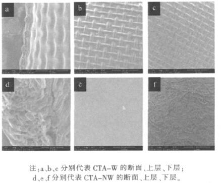 20ÊÀ¼Í90Äê´úOsmotek¹«Ë¾£¨ÏÖHTI£©¿ª·¢³öÌØÊâµÄÕýÉøÍ¸Ä¤£¬ÕâÖÖĤÊÇÒÔÈýÒÒËáÏËÎ¬ËØ£¨CTA£©Îª²ÄÁÏ£¬²ÉÓÃÏàת»¯·¨ÖƵõġ£¸ù¾ÝÓ¦ÓÃÉϵIJ»Í¬ÒªÇó£¬HTI¿ª·¢ÁË2ÖÖFOĤ£ºCTA-NWºÍCTA-W¡£ÆäÖÐCTA-NWΪ²ã×´½á¹¹£¬ÈýÒÒËáÏËÎ¬ËØ²ãÏÂÃæÎªÎÞ·ÄÖ§³Å²ã£¬ÓɾÛÒÒÏ©°ü¸²µÄ¾Ûõ¥ÏËά¹¹³É£¨Í¼1d¡¢e£©£»CTA-WÔò²ÉÓþÛõ¥É¸ÍøÈ¡´úÎÞ·ÄÖ§³Å²ã£¬½«ÈýÒÒËáÏËÎ¬ËØ²ã°ü¸²²¢Ç¶ÈëÔÚ¾Ûõ¥É¸ÍøÄÚ£¨Í¼1a¡¢b£©¡£CTA-NW½ÏCTA-WµÄÍÑÑÎÂʸü¸ß£¬µ«Ë®Í¨Á¿½ÏµÍ¡£