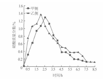 ¡¡¡¡¼×¡¢ÒÒÁ½²àËáÏ´¹ý³ÌÖÐËáÏ´ÒºÖеÄËáŨ¶È±ä»¯Èçͼ 3 Ëùʾ¡£