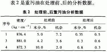 表2是重污油在处理前、后的分析数。
