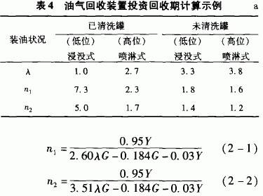 当汽油装车量G=80×10 t/a,投资总估价150万元RMB,其静态投资回收期凡 、凡:计算值也列入表4中。回收装置的经济效益是十分明显的。