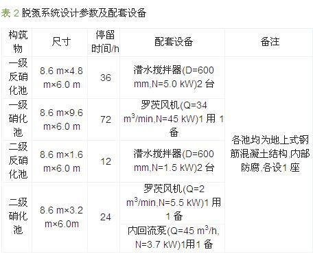 ¡¡¡¡¿¼ÂÇÉøÂËÒº¸ß°±µªµÄË®ÖÊÌØµã£¬Éè¼Æ·´Ïõ»¯Ç°ÖõÄÁ½¼¶Ïõ»¯·´Ïõ»¯ÍѵªÏµÍ³£¬ÉøÂËÒºÖØÁ¦×ÔÁ÷ÒÀ´Îͨ¹ýÓÉÒ»¼¶·´Ïõ»¯³Ø¡¢Ò»¼¶Ïõ»¯³Ø¡¢¶þ¼¶·´Ïõ»¯³Ø¡¢¶þ¼¶Ïõ»¯³Ø´®Áª×é³ÉµÄÍѵªÏµÍ³£¬¸÷³Ø²ÎÊý¼°ÅäÌ×Ö÷ÒªÉ豸¼û±í 2¡£