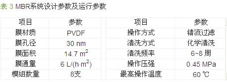 ¡¡¡¡½þûʽMBR×°ÖÃÖÃÓÚÊÒÄÚµÄĤ´¦Àí³µ¼ä£¬´¦ÀíË®Á¿°´7.5 m3/hÉè¼Æ£¬ÁíÍ⣬ÅäÌ׹ķç»ú(Q=2m3/min£¬N=5.5 kW)ΪĤ×é¼þ¹©Æø¡£¸ÃMBRϵͳÉè¼Æ¼°ÔËÐвÎÊý¼û±í 3¡£