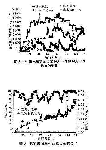°±µªÈ¥³ýÂʺÍÈÝ»ý¸ººÉµÄ±ä»¯Èçͼ3Ëùʾ¡£ª¥ ·´Ó¦Æ÷ÄÚMLSSµÄ±ä»¯Èçͼ4Ëùʾ¡£ ´Óͼ4¿ÉÒÔ¿´³ö£¬·´Ó¦Æ÷ÄÚµÄMLSS²¨¶¯½Ï´ó¡£ÔÚ·´Ó¦Æ÷ÔËÐйý³ÌÖÐÎÛÄàµÄÔö³¤Á¿Ê¼ÖÕ¸ú²»ÉÏÎÛÄàµÄÁ÷ʧÁ¿£¬ËùÒÔÔÚûÓÐÎÛÄà»ØÁ÷(µÚ41ÌìÒÔǰ)µÄÇé¿öÏ£¬·´Ó¦Æ÷ÖÐÎÛÄàŨ¶È³ÊϽµÇ÷ÊÆ£¬MLSS´Ó½ÓÖÖʱµÄ6300mg/LÒ»Ö±½µµ½ÁË300mg/L¡£Îª±£Ö¤·´Ó¦Æ÷ÄÚ¾ßÓÐ×ã¹»µÄÎÛÄàÁ¿£¬ÔÚµÚ41¡«93Ìì¸Ä°´È˹¤¼äЪ»ØÁ÷ÎÛÄàµÄ·½Ê½ÔËÐС£·´Ó¦Æ÷ÍâÅŵÄÎÛÄà¶¼±»ÊÕ¼¯ÆðÀ´²¢¼ÓÒÔÅàÑø£¬µ±·´Ó¦Æ÷ÄÚµÄMLSS£¼1000mg/LʱÔÙ°ÑÕâЩÎÛÄಹ³äµ½·´Ó¦Æ÷ÖÐÒÔ±£Ö¤·´Ó¦Æ÷ÄÚµÄÎÛÄàŨ¶È¡£´ÓµÚ94Ì쿪ʼÔö¼ÓÁ˳Áµí³ØºÍÎÛÄà»ØÁ÷ϵͳ(Èçͼ1ÖÐÐéÏß²¿·ÖËùʾ)£¬·´Ó¦Æ÷µÄÔËÐиÄΪÁ¬ÐøÎÛÄà»ØÁ÷£¬ËùÒÔ´ÓµÚ41¡«141Ìì·´Ó¦Æ÷ÄÚÆ½¾ùMLSS»ù±¾Î¬³ÖÔÚ2000mg/L¡£Í¬Ê±¿ÉÒԲ鿴ÖйúÎÛË®´¦Àí¹¤³ÌÍø¸ü¶à¼¼ÊõÎĵµ¡£ ´Óͼ5¿ÉÒÔ¿´³ö£¬·´Ó¦Æ÷ÖÐDOŨ¶ÈÖ÷Òª¿ØÖÆÔÚÁ½¸öˮƽ£¬¼´ÔÚµÚ121ÌìÒÔǰ·´Ó¦Æ÷ÄÚDOΪ1mg/L×óÓÒ£¬´ÓµÚ122¡«141ÌìÔòÖ÷Òª¿ØÖÆÔÚ2mg/L×óÓÒ¡£½ø¡¢³öË®×ܵªµÄ±ä»¯¼ûͼ6¡£