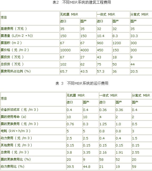 ´Ó±í2£¬±í3¿ÉÒÔ¿´³ö£º(1)3ÀàMBRϵͳµÄÒ»´ÎÐÔͶ×Ê·ÑÓôóСÒÀ´ÎΪ£ºÎÞ»úĤMBR£¾Ò»ÌåʽMBR£¾·ÖÀëʽMBR£»(2)ÔËÐзÑÓôóСÒÀ´ÎΪ£ºÎÞ»úĤMBR£¾·ÖÀëʽMBR£¾Ò»ÌåʽMBR£»