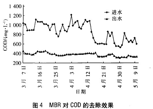 ÊÔÑé´Ó3ÔÂ7ÈÕÒ»5ÔÂ9ÈÕ£¬Ö𲽸ı䷴ӦÆ÷µÄË®Á¦Í£Áôʱ¼ä(HRT)£¬¶Ô·´Ó¦Æ÷½ø¡¢³öË® µÄCOD¡¢°±µª¼°MLSS¡¢ÈܽâÑõ¡¢Ä¤Ñ¹µÈ½øÐÐÁ¬Ðø¼à²â£¬¿¼²ì´¦ÀíЧ¹û¡£