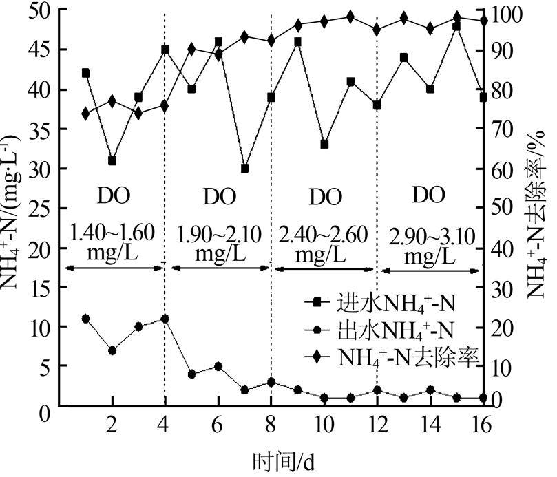 ͼ 2 ²»Í¬DOÏÂNH4+-NÈ¥³ýЧ¹û