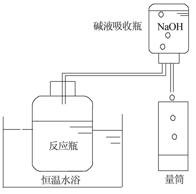 ¡¡¡¡·Ö±ðÑ¡ÓÃÈÝ»ýΪ500 mL µÄÒ½ÓÃÆÏÌÑÌÇÆ¿×÷Ϊ·´Ó¦Æ¿ºÍ¼îÒºÎüÊÕÆ¿£¬Æ¿¿ÚÓÃÒ½ÓÃÏðƤÈûÃÜ·â¡£²ÉÓúãÎÂˮԡ¹ø¼ÓÈÈ£¬Î¶ȿØÖÆÔÚ35 ¡æ×óÓÒ¡£¾¹ýÑáÑõÏû»¯£¬·´Ó¦Æ¿ÖеÄÓлúÎï±»½µ½â²úÉú¼×ÍéºÍ¶þÑõ»¯Ì¼ÆøÌå£¬ÆøÌåÑØµ¼¹Ü½øÈë×°ÓÐ0.1 mol/L NaOHÈÜÒºµÄÎüÊÕÆ¿£¬¶þÑõ»¯Ì¼±»ÎüÊÕ£¬¼×Íé´æÁôÔÚ¼îÒºÎüÊÕÆ¿ÖУ¬²ÉÓÃÅÅË®·¨²â¶¨¼×Íé²úÉúÁ¿¡£