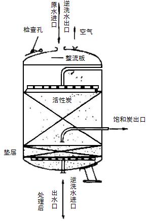 固定床式吸附即吸附剂固定不动,水流通过吸附层,固定床工艺是水处理工艺中最常用的一种方式。当废水连续通过填充吸附剂的吸附设备(吸附塔或吸附池)时,废水中的吸附质便被吸附剂吸附。若吸附剂数量足够时,从吸附设备流出的废水中吸附质的浓度可以降低到零。吸附剂使用一段时间后,出水中吸附质的浓度逐渐增加,当增加到某一数值时,应停止通水,将吸附剂进行再生,吸附和再生可在同一设备内交替进行,也可将失效的吸附剂卸出,送到再生设备进行再生。