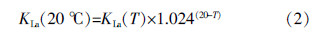 若测试温度不在20 ℃,可采用式(2)对KLa进行修正:
