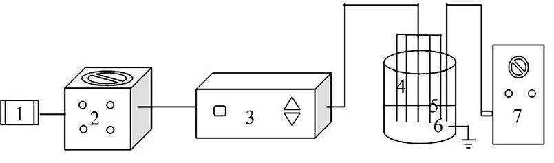 1¡ªµçÔ´£»2¡ªµ÷ѹÆ÷£»3¡ª¸ßѹ½»Á÷µçÔ´£»4¡ªÍµç¼«£» 5¡ª·Åµç·´Ó¦Æ÷£»6¡ªµØÏߣ»7¡ª¿ÕÆøÑ¹Ëõ»ú¡£