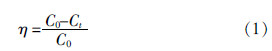 ¡¡¡¡(3)½µ½âÂʵļÆË㡣ʵÑé¹ý³ÌÖУ¬ÓÃÖØ¸õËá¼Ø·¨(GB 11914¡ª1989)¼ì²âCOD£¬ÒÔ´Ë×÷Ϊ½µ½âЧ¹ûµÄÆÀ¼Û±ê×¼¡£¸ù¾Ý¼ÆË㣬·ÏË®ÖÐÊ®¶þÍé»ùÂðßø×ª»»³ÉCODµÄÀíÂÛֵΪ3.45£¬¼´·ÏË®ÖÐ1 gÊ®¶þÍé»ùÂðßø¿ÉÒÔÏûºÄ3.45 gµÄÑõ£¬Ï൱ÓÚ3.45 g COD¡£¾¼ì²âDMPÖÊÁ¿Å¨¶ÈΪ20 mg/Lʱ£¬CODΪ56.5 mg/L£¬½Ó½üÀíÂÛÖµ69 mg/L£¬ÓëÖØ¸õËá¼Ø·¨80%¡«90%µÄÑõ»¯ÂÊÏà·û¡£½µ½âʵÑéÖÐÿ¸ô0.5 hÈ¡Ñù¼ì²âCOD£¬×îÖÕ½á¹ûת»¯Îª¶ÔDMPµÄ½µ½âÂÊ(¦Ç)£¬Æä¼ÆË㹫ʽÈçʽ(1)Ëùʾ¡£