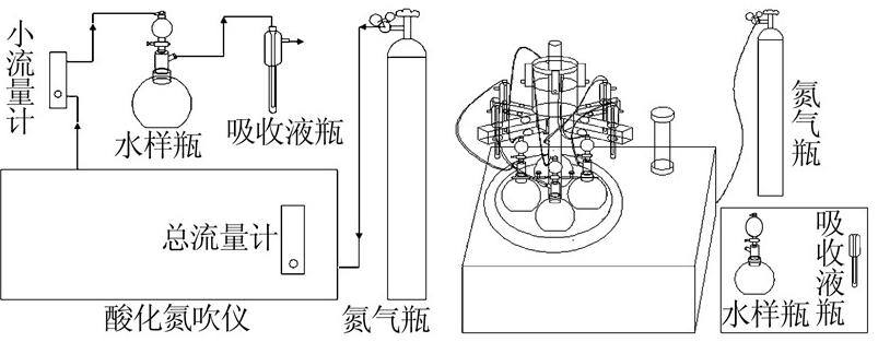仪器:ICS900型离子色谱仪,美国戴安公司;TTL-HS型水质硫化物酸化吹气仪(见图 1),北京同泰联科技公司;DR2800型紫外分光光度计,美国哈希公司。