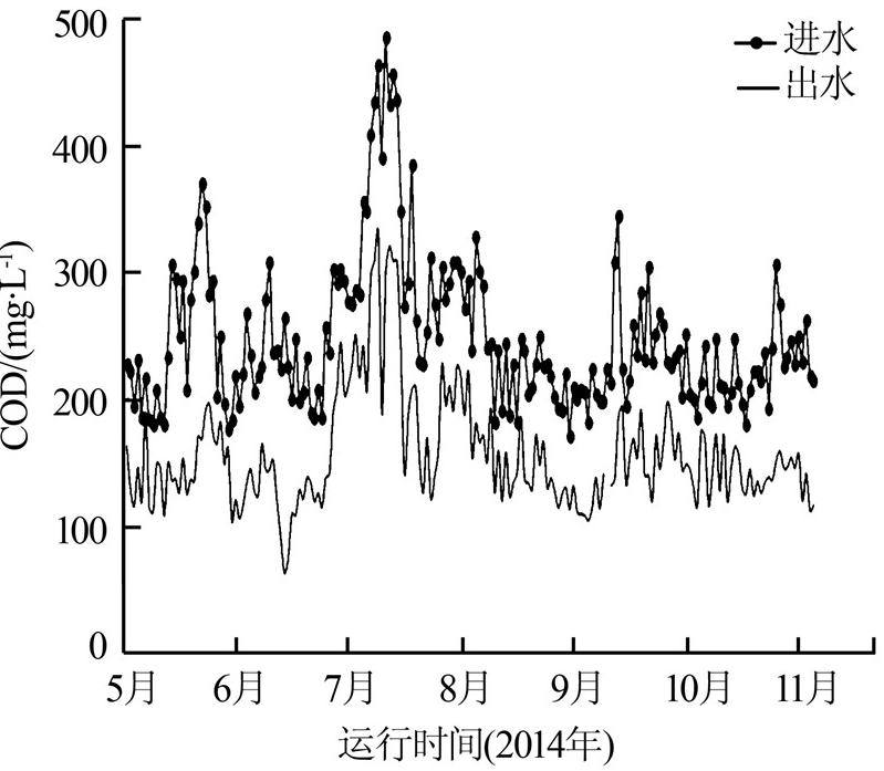 ͼ 2 ³ôÑõ´ß»¯Ñõ»¯µ¥Ôª½ø³öË®COD±ä»¯Çé¿ö
