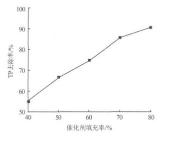 ͼ 3 ´ß»¯¼ÁÌî³äÂÊ¶Ô TP È¥³ýÂʵÄÓ°Ïì