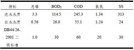 ¹¤³Ì¸Å¿ö£º(1)Éè¼Æ¹æÄ££º1500 m3/d£»(2)¹¤³ÌͶ×Ê£º200ÍòÔª£»(3)ÔËÐзÑÓãº0.18 Ôª/t£»(4)³öˮˮÖÊ£º¡¶³ÇÕòÎÛË®´¦Àí³§ÎÛȾÎïÅŷűê×¼¡·(GB18918£2002)ÖеÄÒ»¼¶±ê×¼ÖеÄB±ê×¼£»(5)2006 Äê4 Ô¿¢¹¤ÑéÊÕ£¬ÏµÍ³ÔËÐÐÎȶ¨£¬¾°¹Û»·¾³ÓÅÃÀ¡£¹¤ÒÕÁ÷³Ìͼ¼ûͼ4£¬´¦ÀíЧ¹û¼û±í3¡£