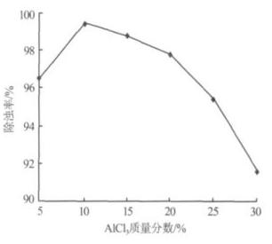 ¡¡¡¡Í¼ 2 ±íÃ÷ £¬ÐõÄý¼ÁÖÐµÄ AlCl3 ¼ÓÈëÁ¿Îª 10%ʱµÄ³ý×ÇÂÊ×î¸ß£¬Îª 99.45%¡£ AlCl3 ÓÃÁ¿¹ý¶àʱ£¬ÎÛË®ÖеĽºÌåÒ×Îü¸½´óÁ¿ÂÁÀë×Ó¶ø´øÕýµçºÉ£¬ÓëÐõÄý¼Á¼ä»á·¢ÉúÅųâ×÷Ó㬲»ÀûÓÚÐõÄý¼Á¶Ô½ºÌåµÄÎü¸½¡£ ¶ø AlCl3 ¼ÓÈëÁ¿½ÏСʱ£¬ÐõÄý¼ÁµÄµçÖкÍÐÔ½ÏÈõ£¬Ò²»á½µµÍÐõÄýЧ¹û¡£
